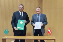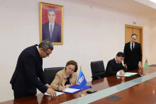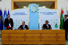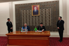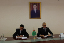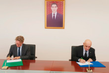Министр торговли и внешнеэкономических связей Туркменистана Назар Агаханов и координатор GIZ (Германское общество по международному сотрудничеству) в Туркменистане Йоахим Фритц подписали протокол о внесении