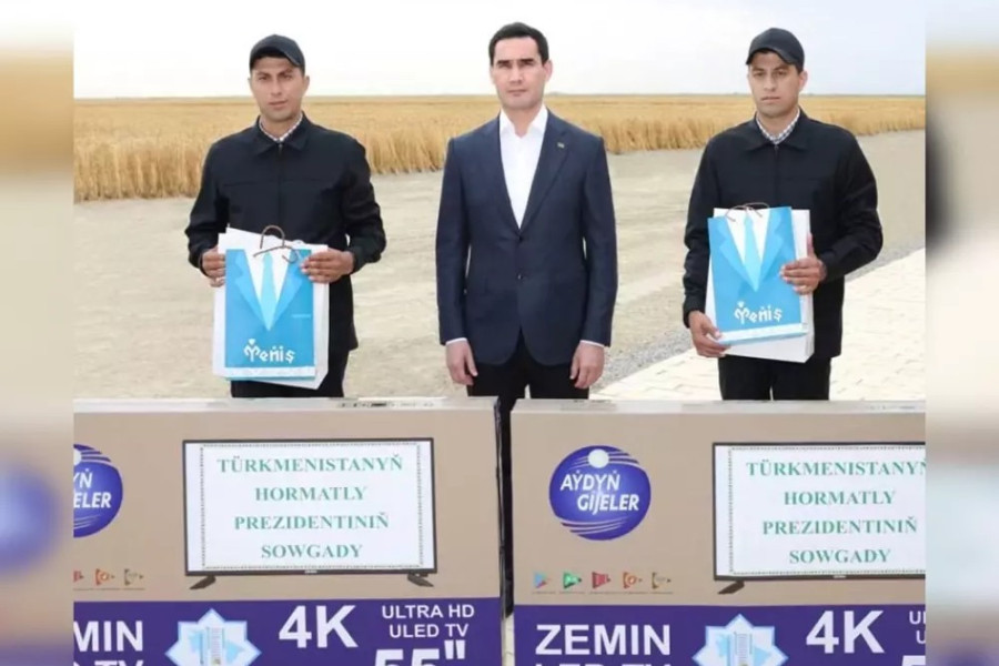 Сердар Бердымухамедов вручил подарки арендаторам, получающим богатые урожаи.